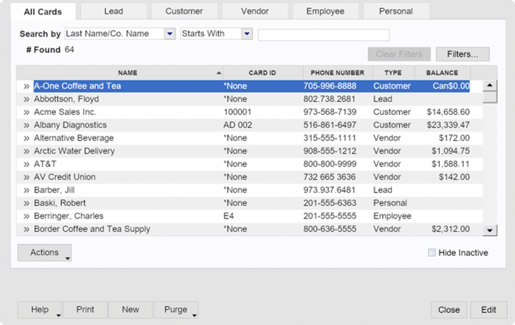 AccountEdge consolidates all contacts—including leads, customers, vendors, and employees—into one unified list. Its built‑in CRM allows you to: