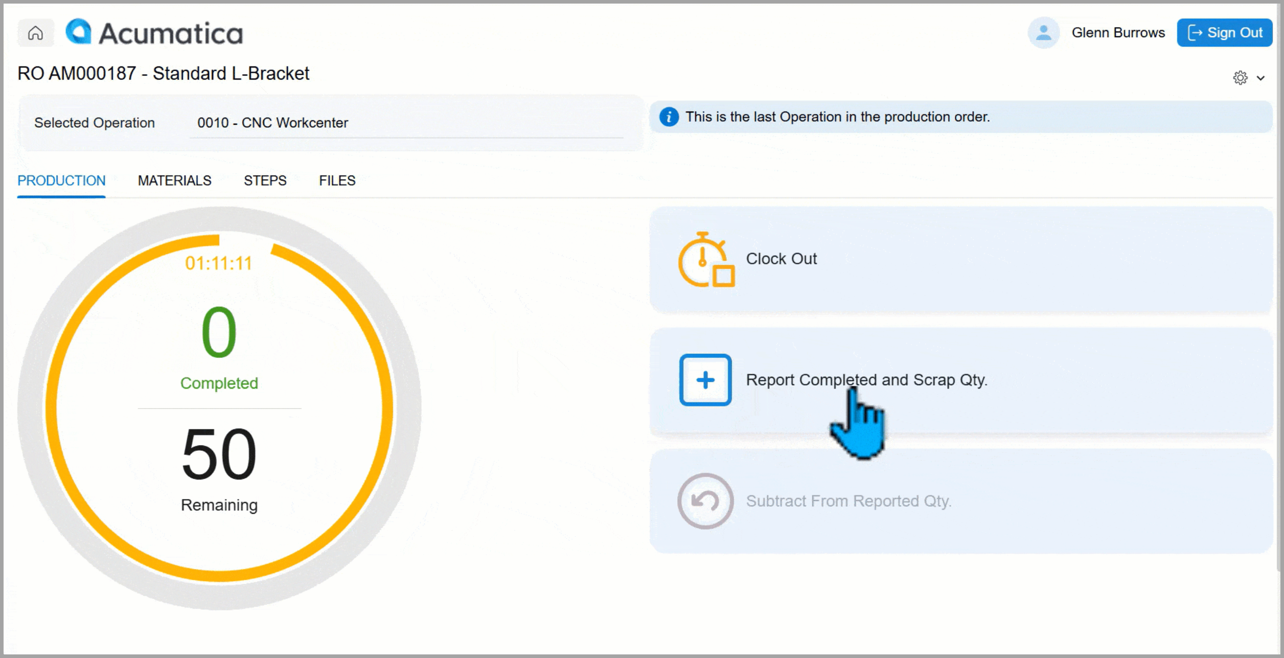- Acumatica Shop Floor Kiosk, a new intuitive interface to support real production environments. It enables workers to capture production data directly as it happens on the shop floor through a simplified experience that provides a clear view of active work, reducing manual data entry and improving real-time visibility into production progress.