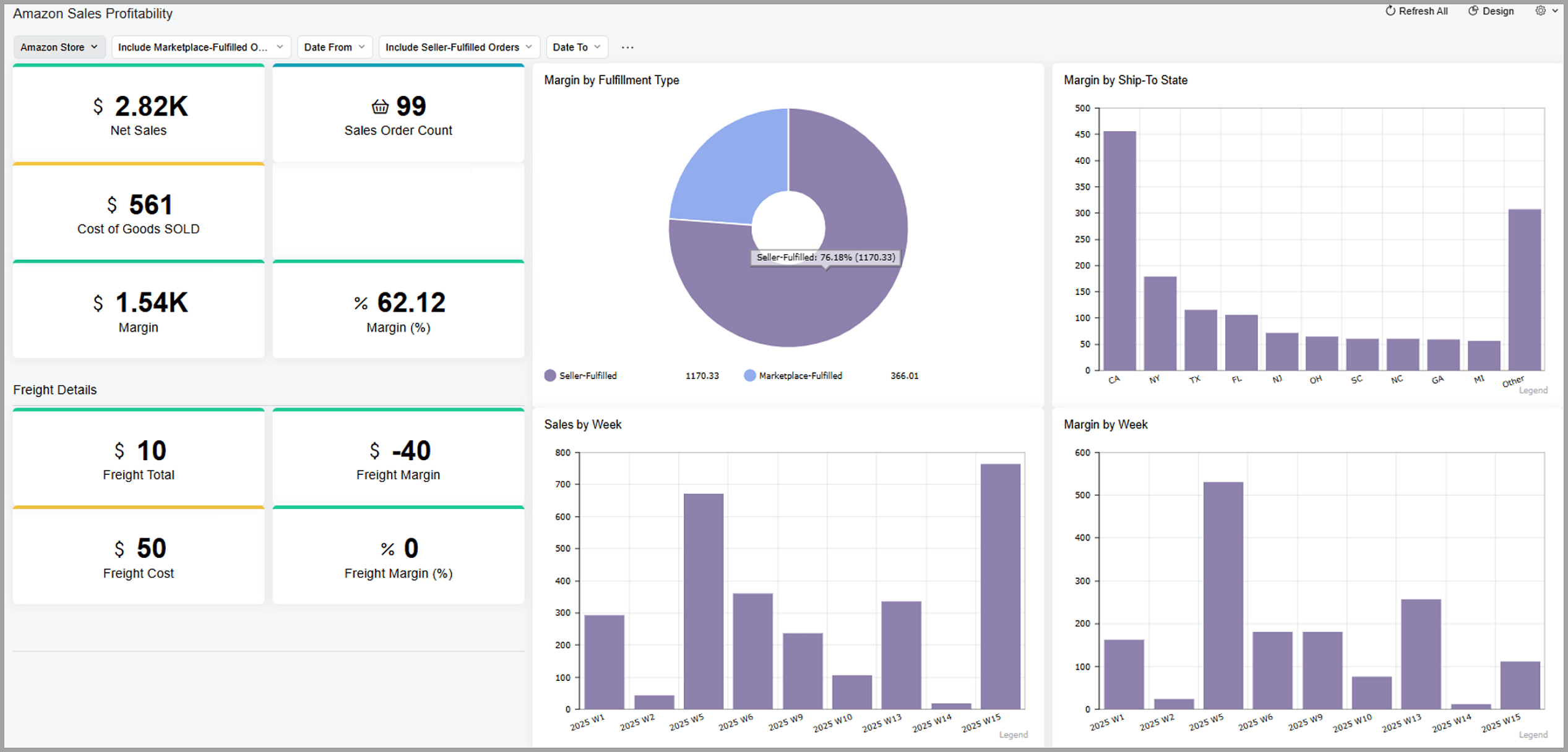 - New Amazon profitability dashboards providing real-time visibility into fees, refunds, Fulfilled by Amazon reconciliation, and settlement performance, empowering teams to protect and grow margins.