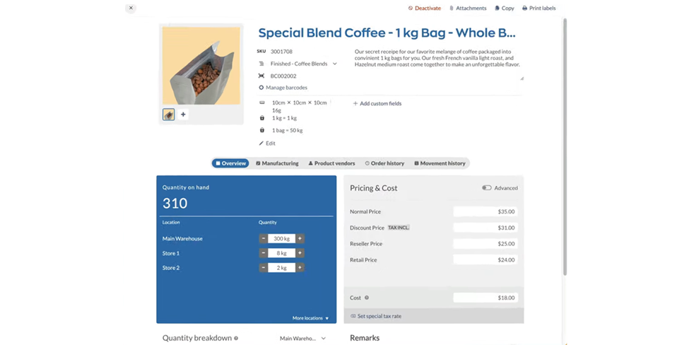 - Full Inventory Features: Includes all core inventory functions plus manufacturing tools.