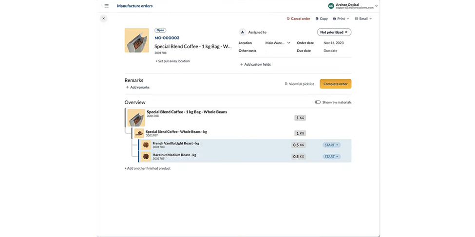 Do you manufacture? inFlow makes powerful manufacturing capabilities available as an upgrade to inventory users. You can quickly see your open manufacturing orders to know what needs to be manufactured next. You choose what and how you want to manufacture products, and inFlow keeps your inventory up to date as you work.