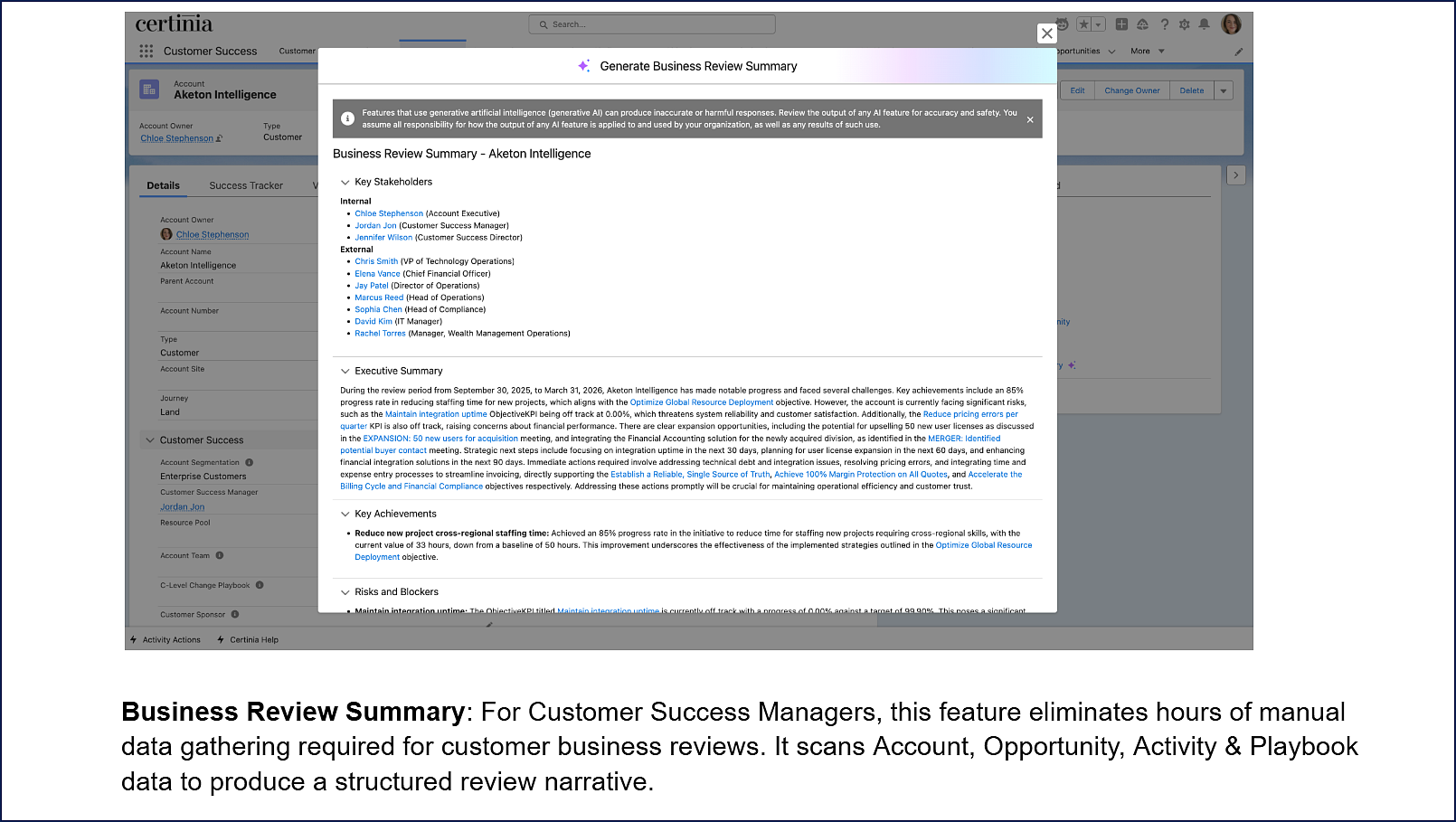 For customer success teams, Veda automates time-intensive workflows such as success planning, account and activity summaries, business review preparation, and tailored playbook creation. By surfacing renewal risks and expansion signals before they appear in the numbers, Veda drives an incremental 1% lift in expansion revenue and churn reduction. Because that retention improvement flows directly into utilization, a 1% utilization gain translates to a 1.5% EBITDA improvement, worth tens to hundreds of millions of dollars annually for large services organizations.