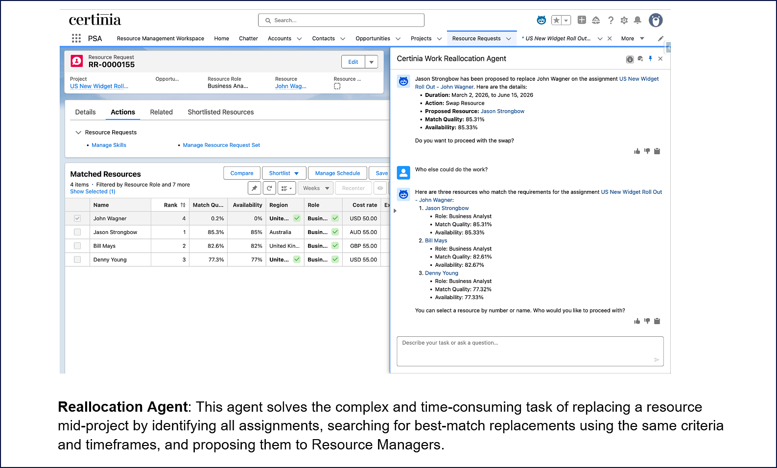For resource managers, Veda automates staffing analysis, bench matching, and work reallocation, returning up to 10 hours of capacity per month on top of the 10 to 25% productivity lift already delivered by Certinia's core solution.