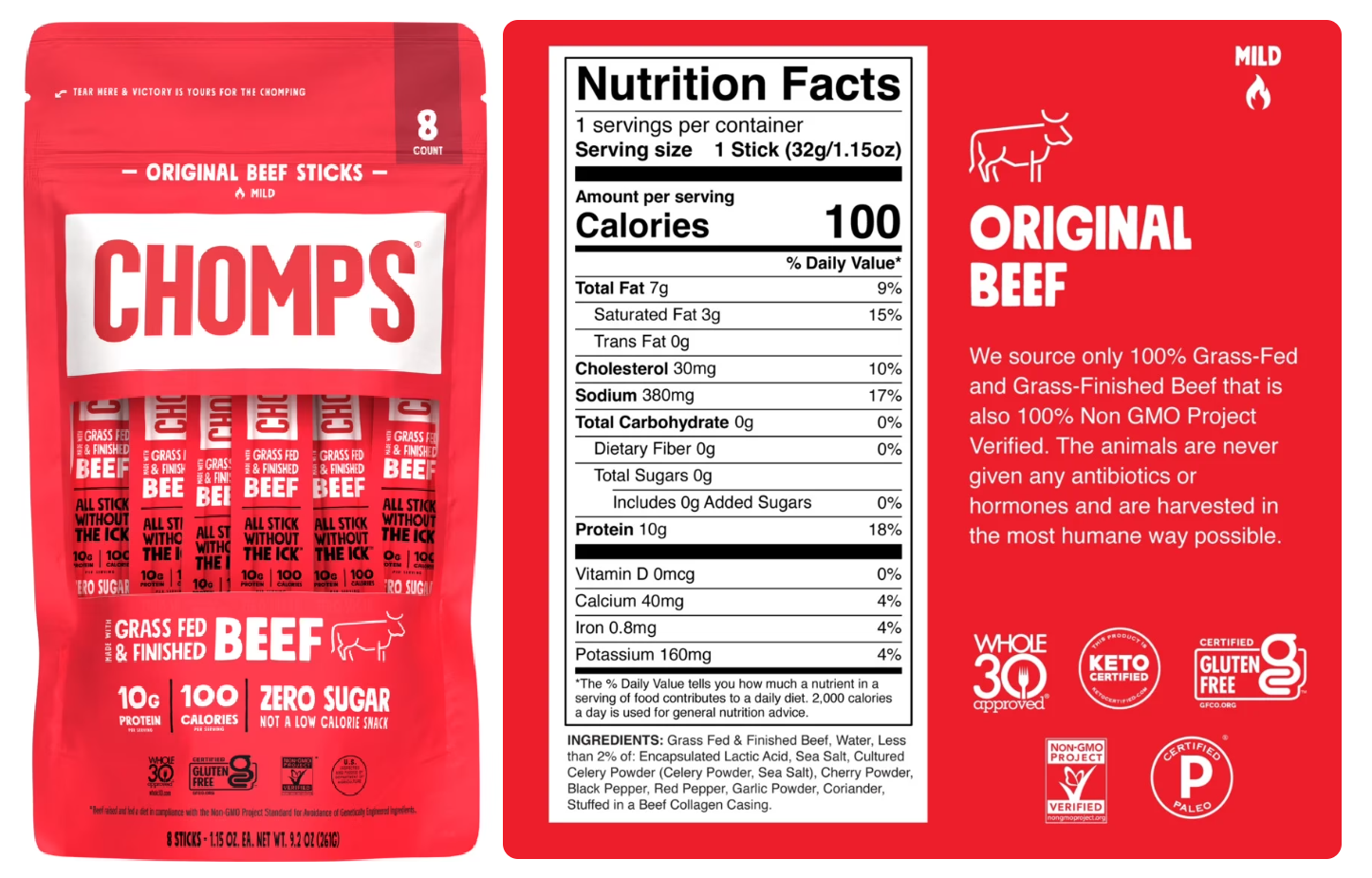 Chomps is America’s fastest-growing meat snack brand**, redefining convenient snacking with a commitment to real ingredients and bold, satisfying flavors. Crafted from 100% grass-fed, grass-finished beef and venison, along with antibiotic-free turkey, each of Chomps’ meat sticks delivers 10-12 grams of high-quality protein without sugar, hormones, soy, dairy, artificial preservatives, artificial nitrates, or MSG. Seasoned with a blend of flavorful herbs and spices, Chomps provides a nutritious protein snack for the whole family. As a minority-owned, family-operated business, Chomps prioritizes thoughtful sourcing and is free of the top 9 allergens. Discover a new standard in snacking at www.chomps.com.