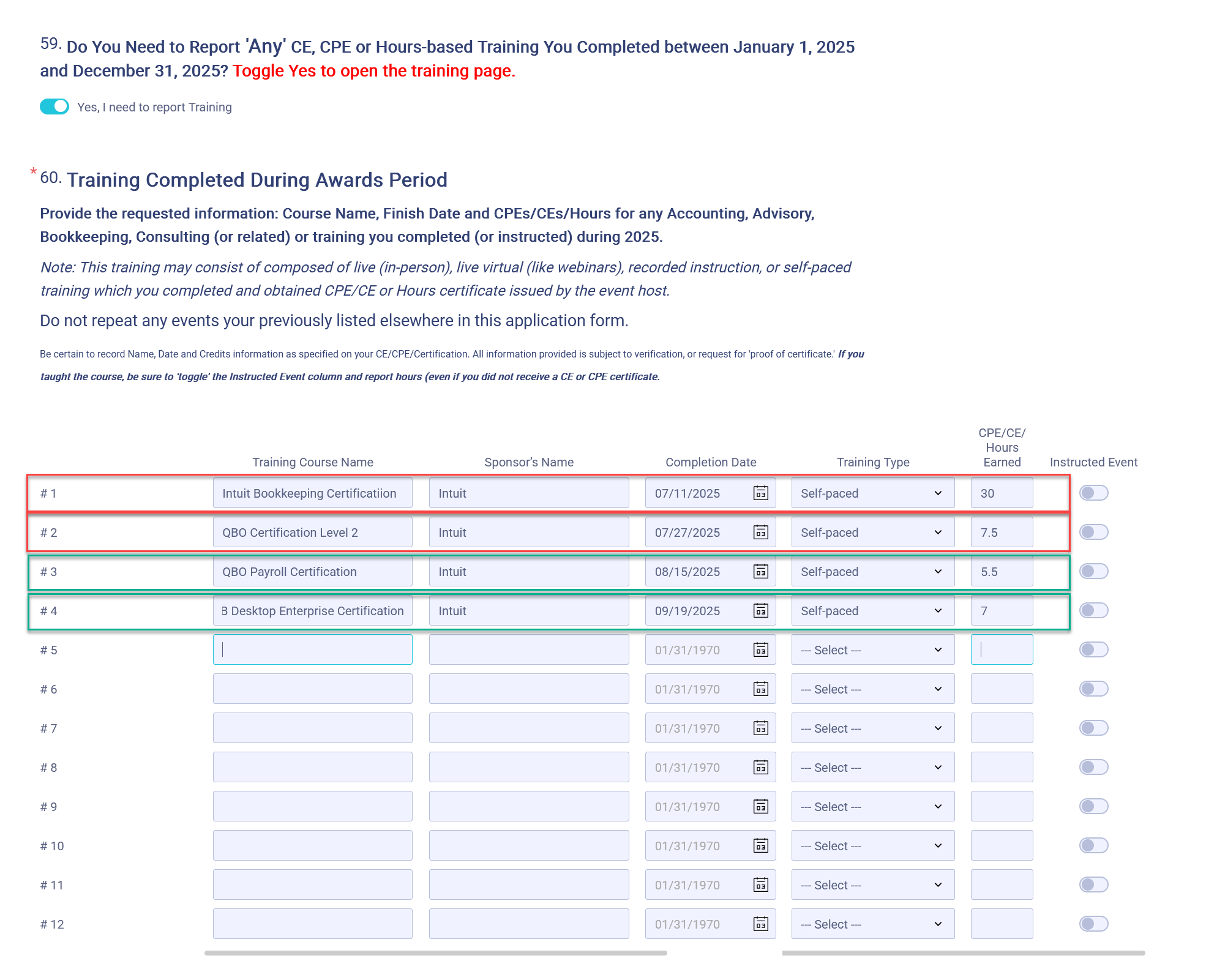 Simplicity is the 'name of the game' when it comes to reporting your training in the 2026 Top ProAdvisor Application form.