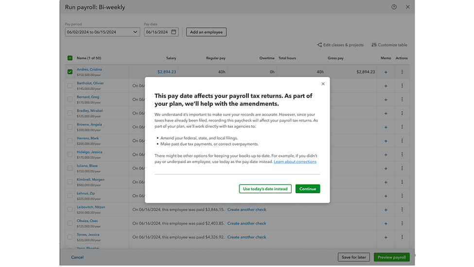 Now, you can avoid all that waiting, and make those corrections within QBO if you are using Core, Premium, or Elite QuickBooks Online Payroll*. As part of the correction process, Premium and Elite subscribers with "automated taxes and forms" active, can trigger the tax amendments process using the Payroll Care team at the conclusion of actual corrections.