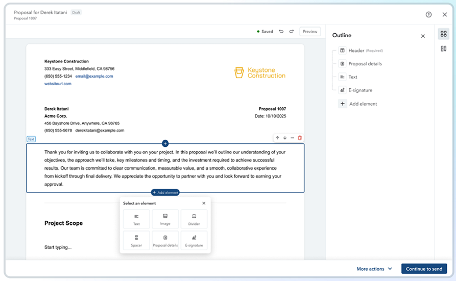 CEIES helps construction companies manage projects end to end with AI driven tools for bidding, project planning, management, and closeout. Companies can build proposals from estimates (or vice versa), create custom proposal documents with e signatures, and allow clients to sign, make deposits, and review project details through a client portal.