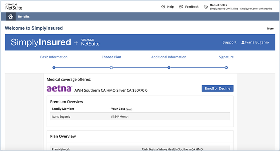 With this release, NetSuite SuitePeople includes a new integrated benefits partner, SimplyInsured—a platform through which businesses can provide employee health insurance. This integration means new hires and existing employees can log into SuitePeople’s employee center to sign up for health benefits. Any deductions are automatically taken from employee pay during payroll, and costs are posted to the general ledger for tracking. This reduces the hands-on work for tracking employee health insurance costs and gives financial leaders better insight into healthcare costs to make more informed workforce and benefits planning decisions.