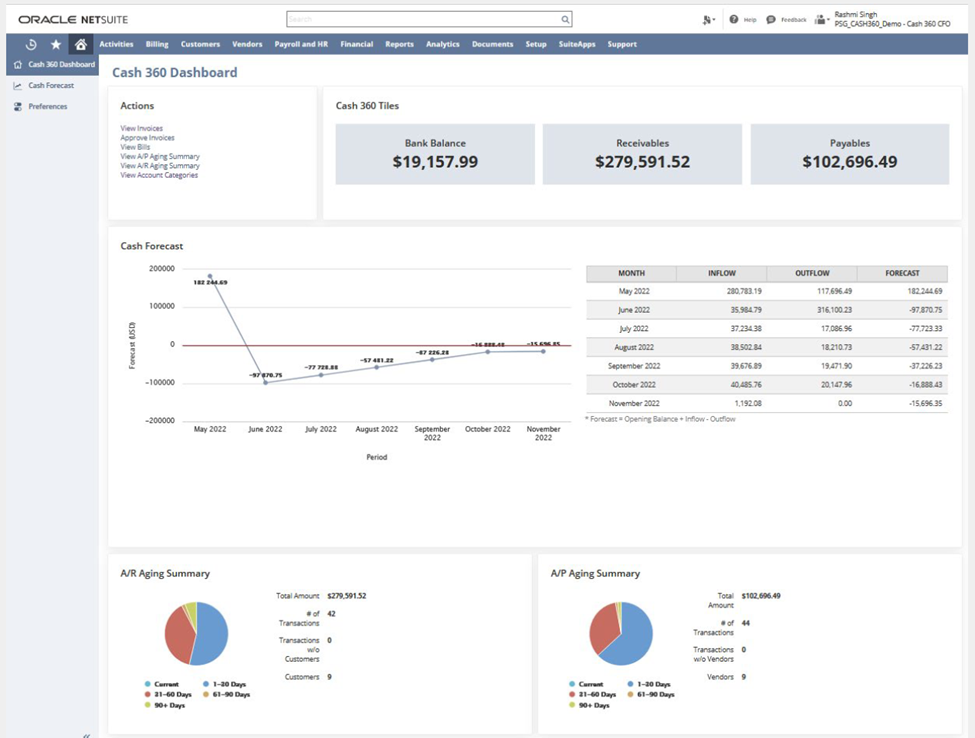 - Installment schedules for cash forecasting: The Cash 360 SuiteApp now incorporates installment schedules defined on invoices and vendor bills to facilitate more accurate forecasting of accounts receivable and accounts payable.