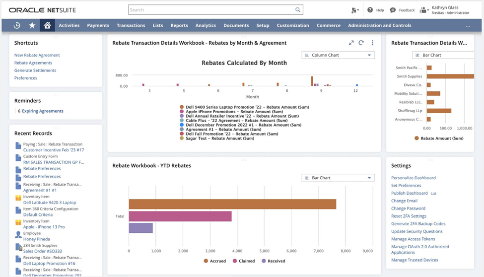 - Enhancements to the tiered volume rebates feature: Updates to the Rebates & Trade Promotions SuiteApp lets companies assign forecasts for each tiered rebate, basing accruals on the forecasted tier for better accuracy. Additionally, rebate agreement calculations are now available for purchase transactions, not just sales transactions.