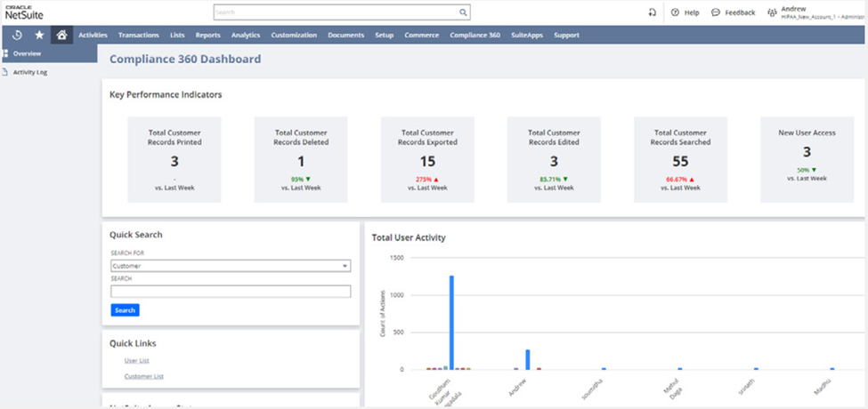 - Updated audit documentation in NetSuite Compliance 360: Enhancements to NetSuite Compliance 360 improve audit documentation by providing more forms for documentation of audits and their findings, the option to attach files and export audit results, and customizable activity portlets.