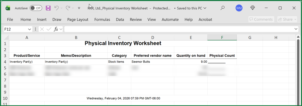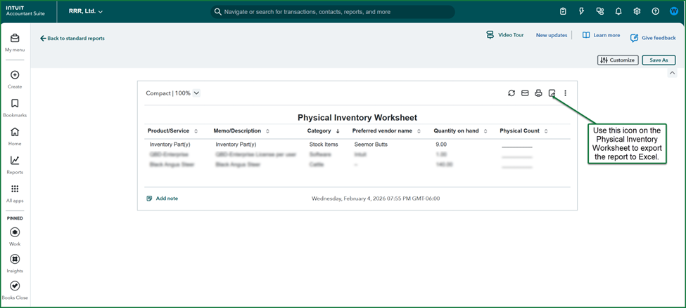 - Prepare a physical inventory worksheet (PIW) from the Reports >> Inventory list,