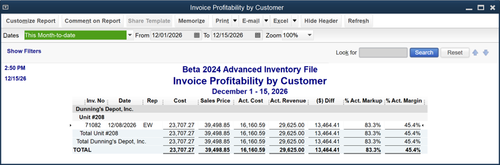 Intuit recently updated QuickBooks 2024 with Release 16 (specifically R16_34), and that release included an Invoice Profitability Report.