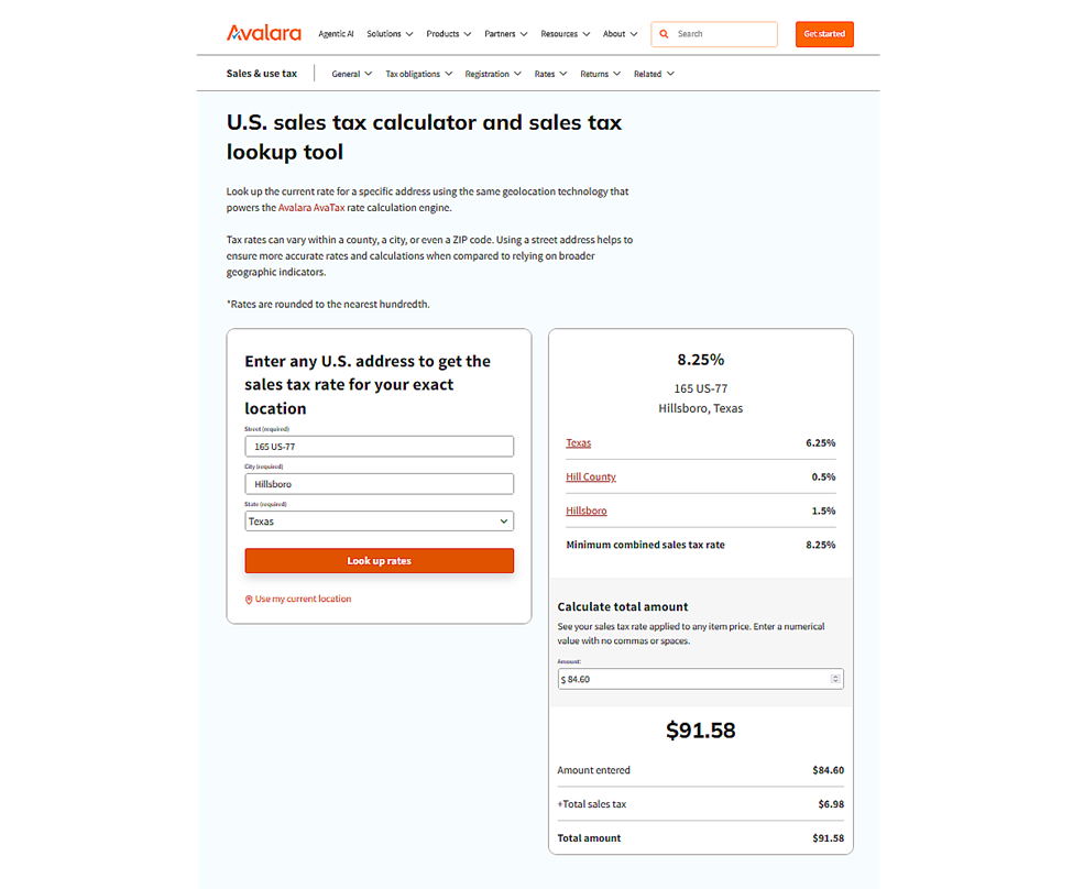 All told, the damage from making the mistake of walking into that place was $84.60 (pre-tax), according to the Avalara Sales and Use Tax Calculator we are paying $6.98 in total sales tax, of which 6.25% is the Texas state sales tax, 0.5% is the Hill County sales tax, and 1.5% is the Hillsboro (city) sales tax, for a total of 8.25%.