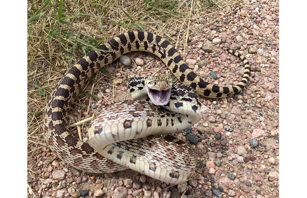 This rattlesnake is opening his mouth as to say, "Welcome to the 'Law West of the Pecos', Court is now in session. Judge Roy Bean, presiding."