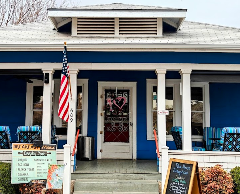 We are up at the crack of day and on our way because we have a long way to travel to our next destination, a little more than six hours away. From here, we are on U.S. 285 all the way. I won't bore you with travel details, except to say that along the way we'll stop at another famous location. But first, we need to get some breakfast. We've made it all the way to Carlsbad, New Mexico, where we'll stop at Blue House Bakery Café. Other than the blue siding, this place looks almost like the Judge Bean house.